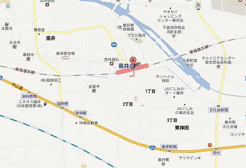 岐阜県不破郡垂井町東町にあるJR東海道本線の駅で普通電車のみが停車します。快速・新快速は米原−大垣間は各駅に停車するので